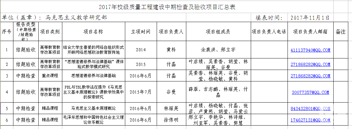 2017年我部参加校级质量工程建设中期检查及验收项目汇总