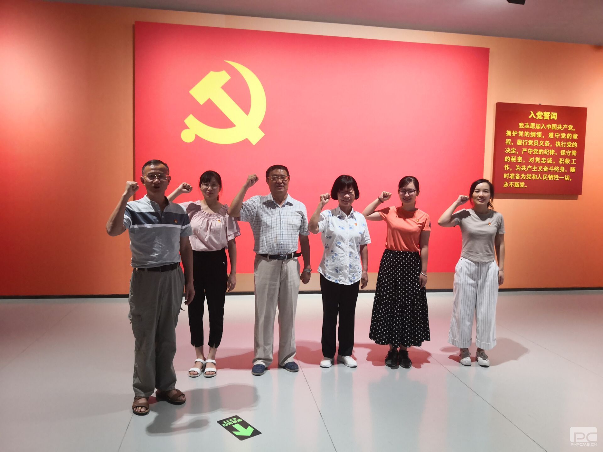 在展馆特别布置的重温入党誓词处,全体参加活动的党员庄重地举起右手,在学院党委书记叶启绩的带领下,集体重温入党誓词。