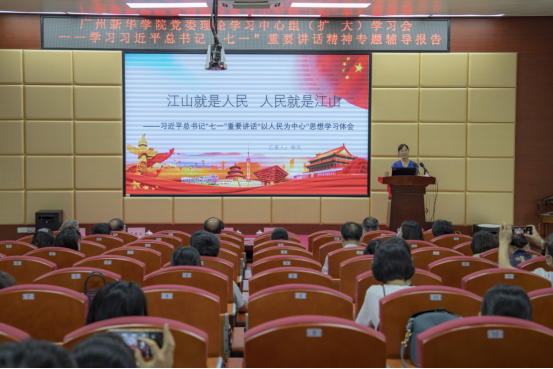2021年8月27日,2021学年秋季学期开启的第三天,学校党委举行党委理论学习中心组(扩大)学习会专题学习“七一”重要讲话精神,邀请我院杨凤教授以“江山就是人民 人民就是江山”为主题作学习“七一”重要讲话精神专题辅导报告。学校党史学习教育领导小组成员、办公室成员,学校党委理论学习中心组成员,两委委员,各级党政负责人、思政课教师共计200余人参会学习。