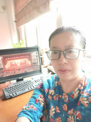9428cn太阳集团古天乐党支部教工党员周茜蓉老师观看大会直播