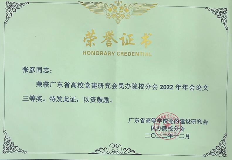 广东省高等学校思想政治教育研究会民办高校思想政治教育委员会发布《关于2022年度优秀论文评选结果的通知》,我院教师张彦和莫楠的论文《课程思政与思政课程协同育人的逻辑理路与机制建构》、《课程思政与思政课程协同育人研究》分别获得二等奖和三等奖。