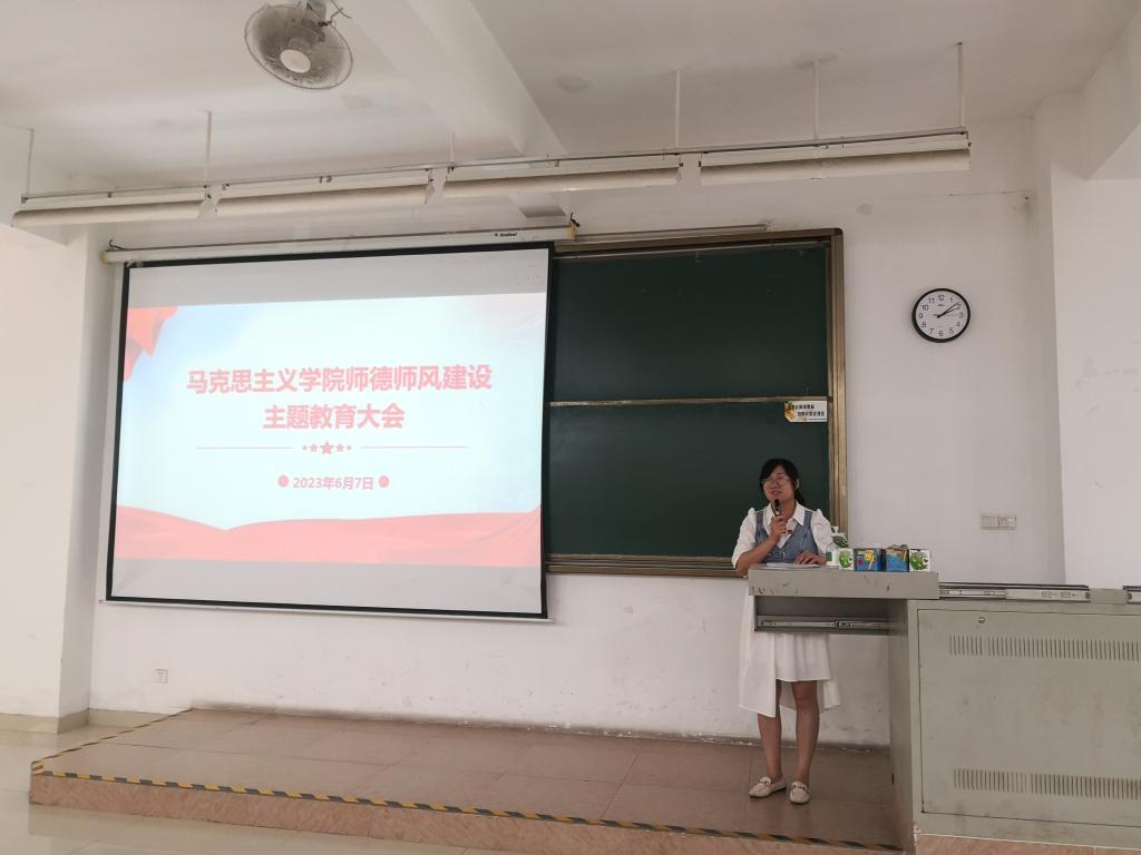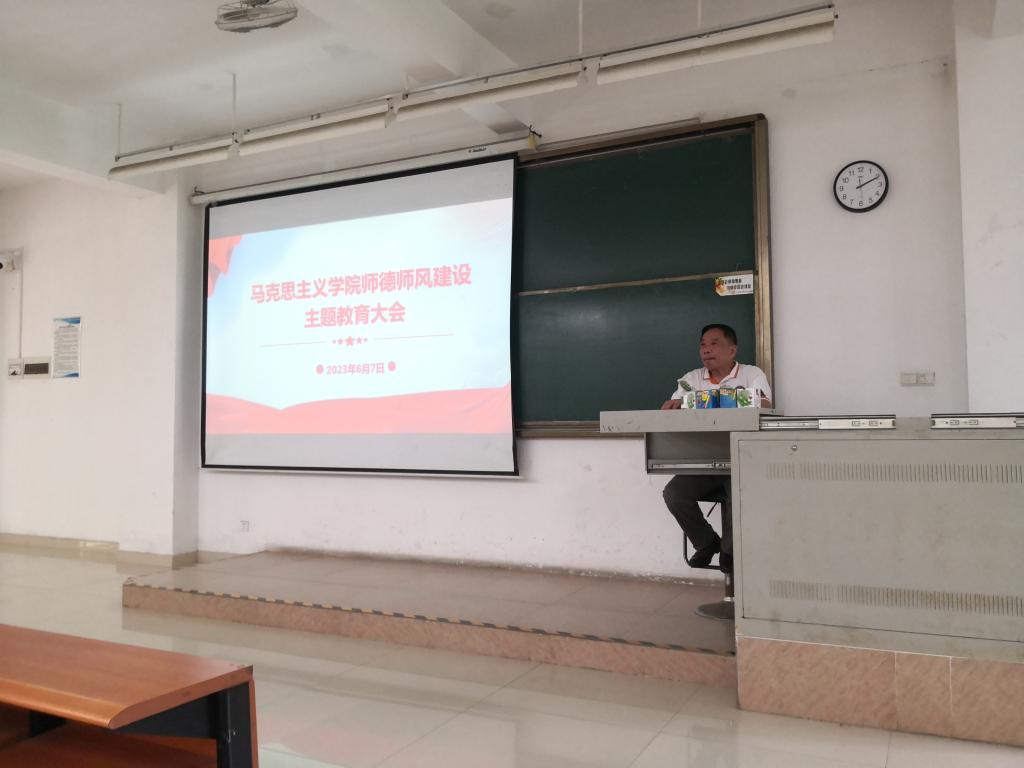 接着,旷三平院长开展师德警示教育,要求全院教师要把立德树人的成效作为检验一切工作的根本标准,把师德师风作为评价教师自身素质的第一标准,用习近平新时代中国特色社会主义思想武装头脑,将社会主义核心价值观贯穿师德师风建设全过程,坚持思政课教师“政治要强、情怀要深、思维要新、视野要广、自律要严、人格要正”的“六要”标准,共同建设风清气正的马院教师队伍,高质量推进本年度师德教育走深走实。