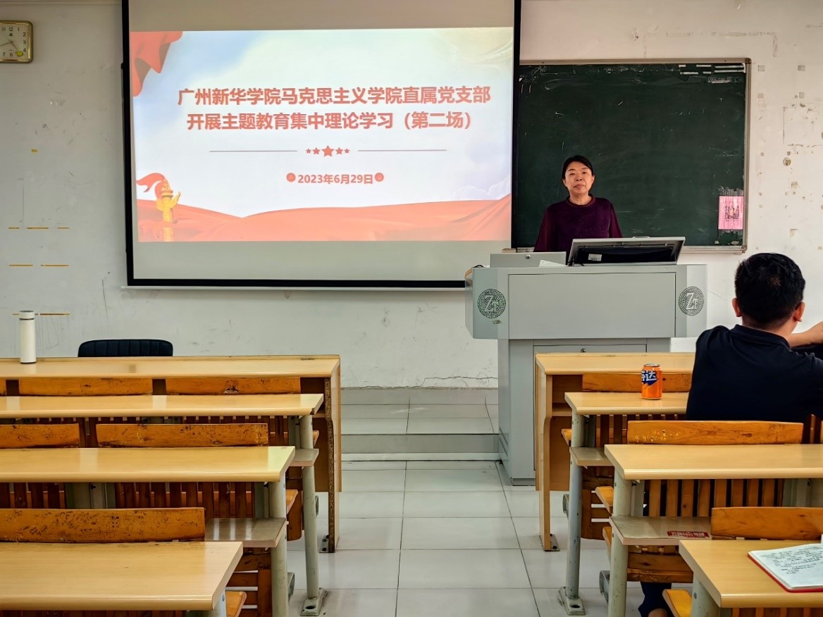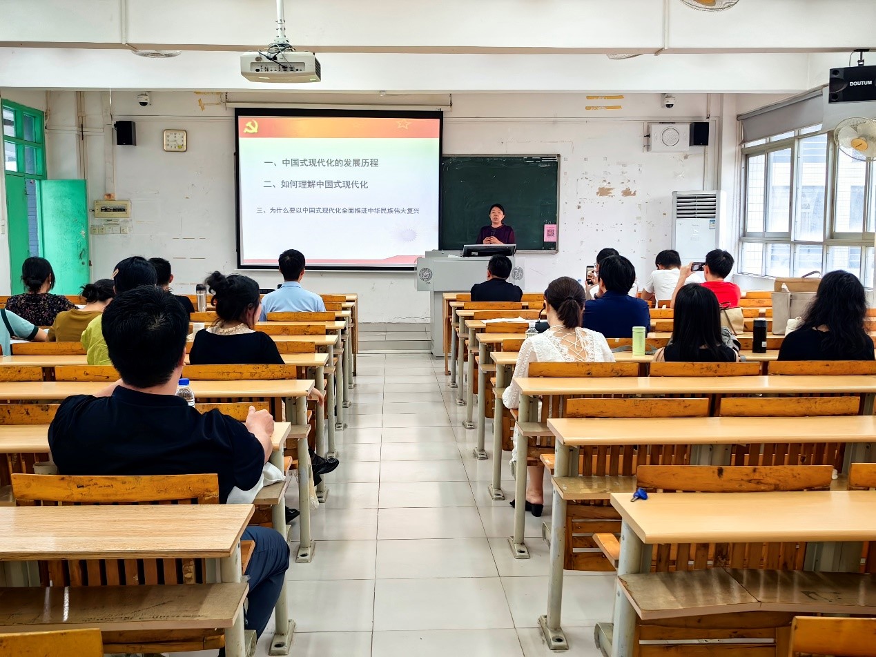 为持续推动学习贯彻习近平新时代中国特色社会主义思想主题教育走深走实,6月29日下午,9428cn太阳集团古天乐在广州校区B203开展了学习贯彻习近平新时代中国特色社会主义思想主题教育第二场集中学习,我院周月英副教授作《以中国式现代化全面推进中华民族伟大复兴》专题报告,9428cn太阳集团古天乐直属党支部全体党员教师参会学习。