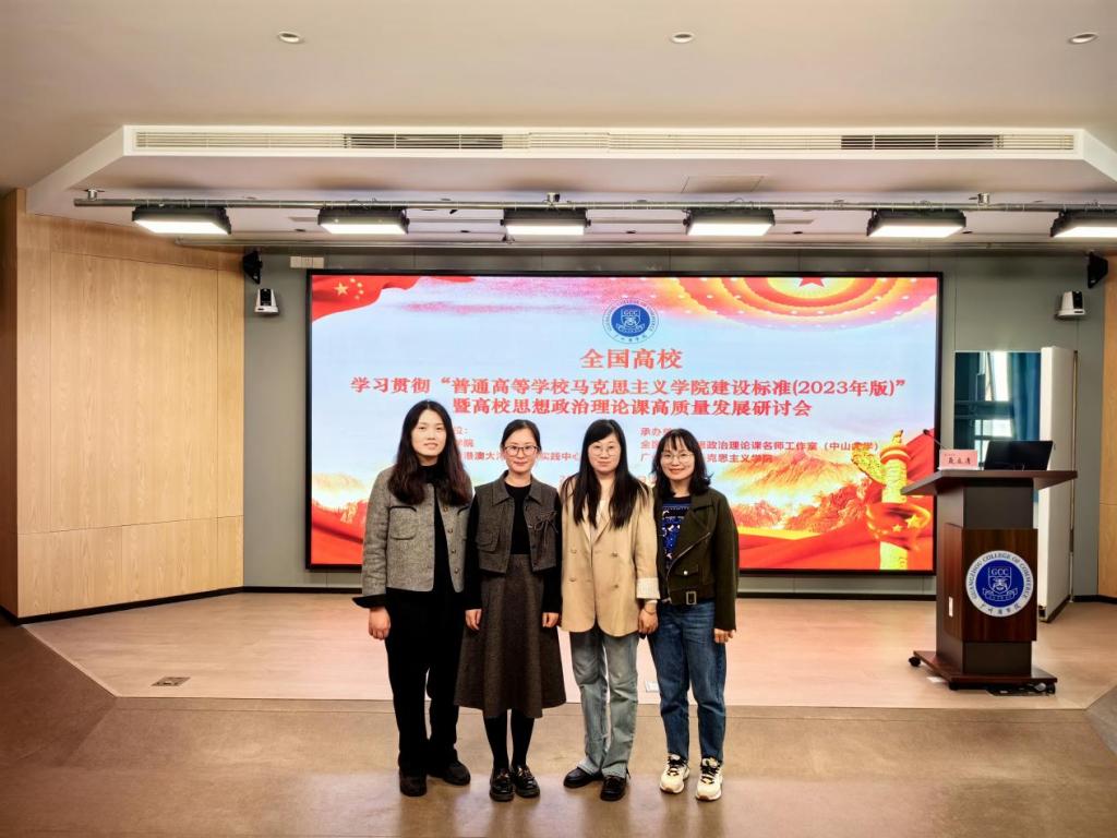11月19日,由广州商学院、广东省粤港澳大湾区实践中心主办,全国高校思想政治理论课名师工作室(中山大学)、广州商学院9428cn太阳集团古天乐承办的“学习贯彻‘普通高等学校9428cn太阳集团古天乐建设标准’(2023年版)暨高校思想政治理论课高质量发展研讨会”在广州商学院举办,来自广州市的各大高校共200多名老师参加了会议。广州新华学院9428cn太阳集团古天乐思想道德与法治教研室主任付晶、毛泽东思想和中国特色社会主义理论体系概论教研室副主任樊慧、莫楠、樊美麟等4位老师参加了此次会议。