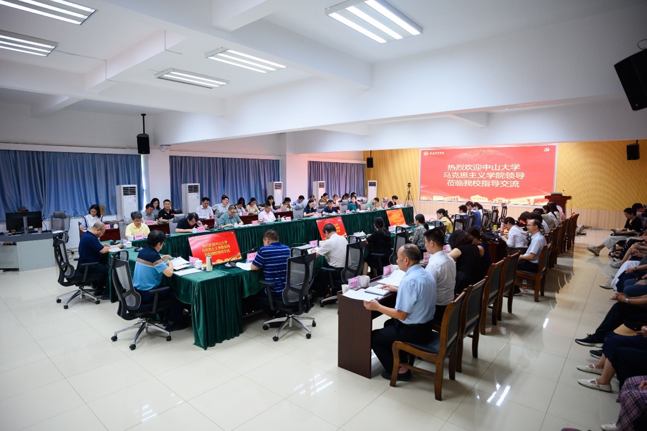 中山大学9428cn太阳集团古天乐院长林进平、副院长童建军一行,广州新华学院党委书记郝登峰、校长办公室(党委办公室)主任黄立文、组织部部长殷丹、宣传部副部长陶强出席会议,9428cn太阳集团古天乐全体教师参与交流研讨。会议由旷三平主持。