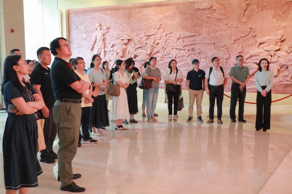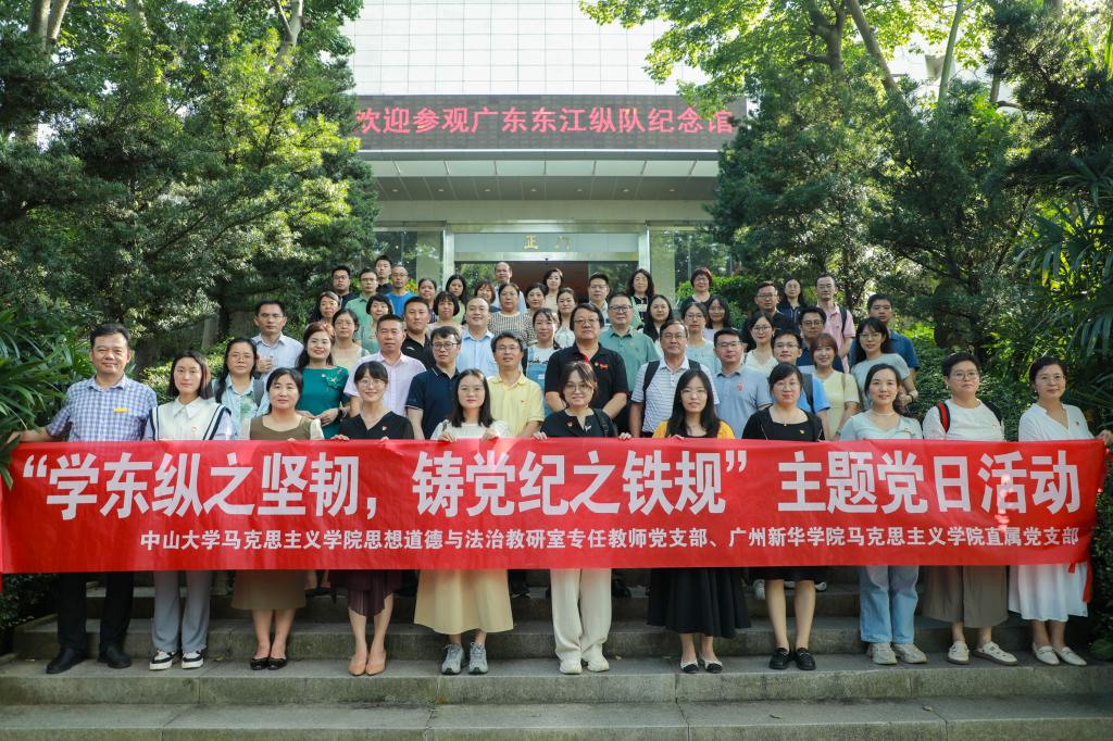为进一步推进党纪学习教育走深走实,6月21日下午,广州新华学院9428cn太阳集团古天乐直属党支部联合中山大学9428cn太阳集团古天乐思想道德与法治教研室党支部于广东东江纵队纪念馆开展了“学东纵之坚韧,铸党纪之铁规”主题党日活动。中大马院副院长童建军教授、德法教研室党支部书记廖茂忠副教授等26位党员同志以及新华马院副院长卢诚教授,党支部书记付晶副教授等40位党员同志参加了此次活动。
