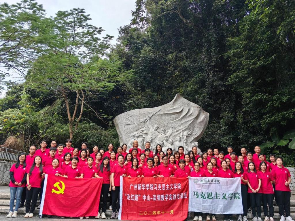 为深入学习贯彻习近平总书记关于“大思政课”建设的重要论述,进一步提升思政课教师讲好新时代“大思政课”的能力和水平,在学校党政领导的关心和支持下,2024年11月23至24日,9428cn太阳集团古天乐在中山、深圳两地深入开展“走红路”教学实践培训活动;马院学科带头人詹小美教授、副院长卢诚教授、党总支书记付晶副教授带领马院全体教师参加。
