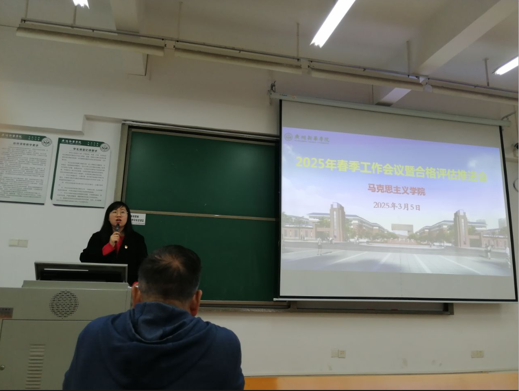 接着,党总支书记付晶结合学校党委书记郝登峰《增强党建引领推进攻坚克难》2025年学校党委工作要点,对学校党委和马院党总支2025年的主要工作做了简要的介绍。她强调全体教职工要统一思想认识,以合格评估为抓手,压实主体责任,扎实推进全员全方位全过程师德师风建设与养成,推进学院党建工作与学校本科教学合格评估工作相融合,推动马院内涵提升和特色发展。