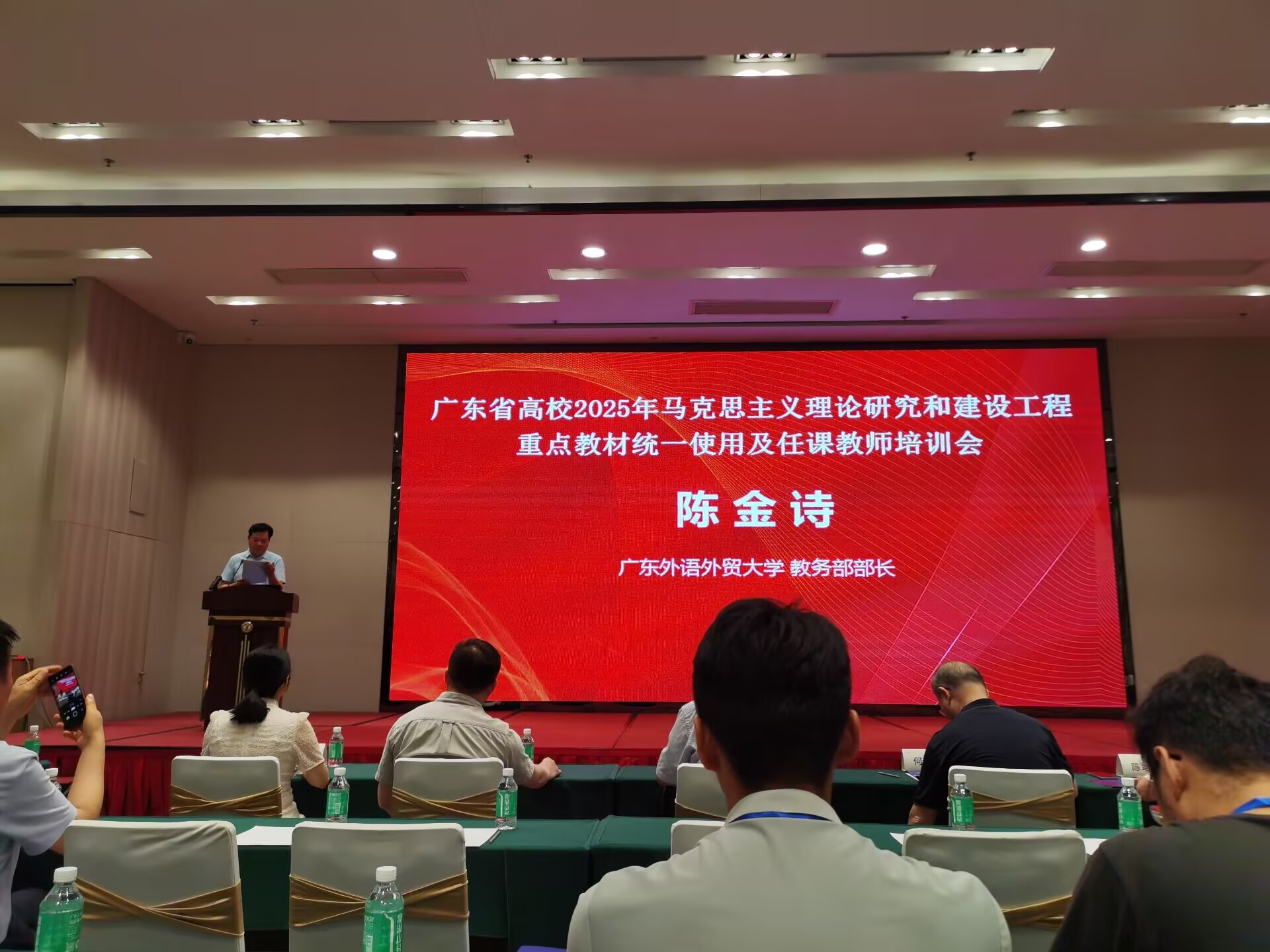 2025年6月20日至21日,由广东省教育厅指导、广东省高等教育学会主办、广东外语外贸大学承办、高等教育出版社协办的2025年“马工程”重点教材培训在广州逸林假日酒举行,我院张改萍、王小平两位副教授参加了培训。