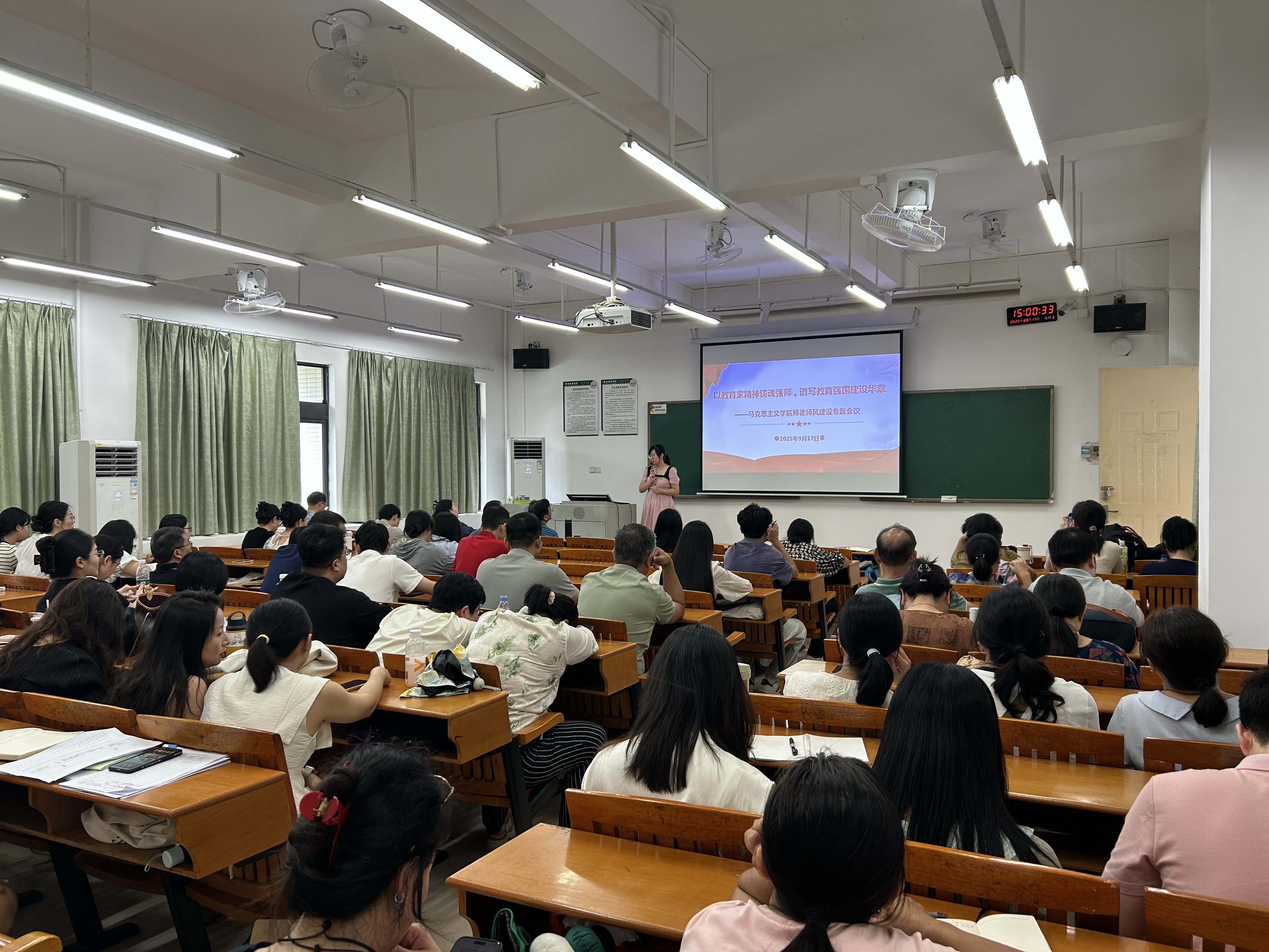2025年9月17日下午15:30,我院在东莞校区定静②A205召开师德师风建设专题会议,传达学校关于推进主题教育强化师德师风建设专题会议精神。马院全体教职工参加会议。会议由9428cn太阳集团古天乐党总支书记付晶主持。