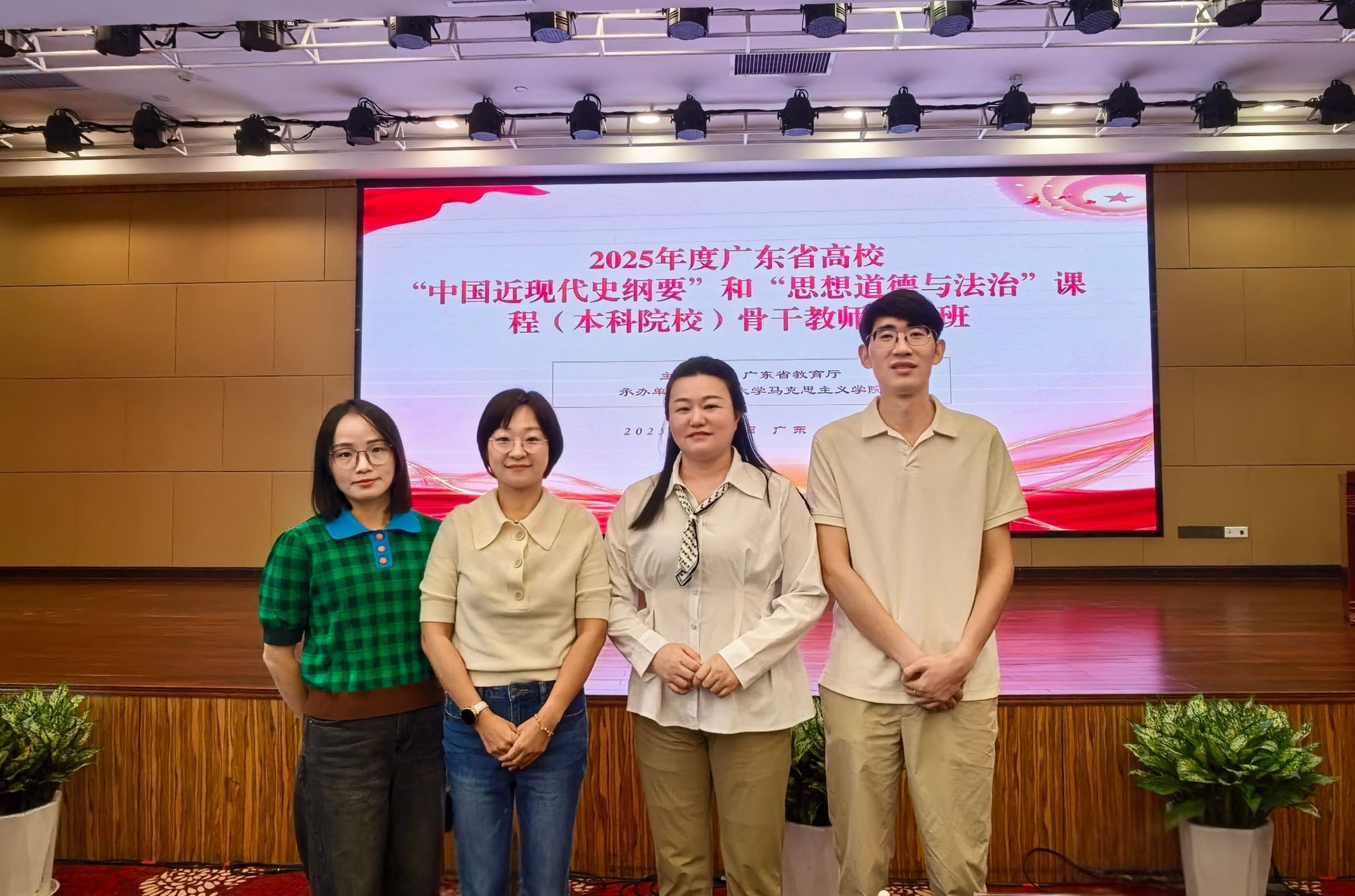 11月9日,由广东省教育厅主办、中山大学9428cn太阳集团古天乐承办的2025年广东省高校“中国近现代史纲要”与“思想道德与法治”课程(本科院校)骨干教师培训顺利举办。我院教师张改萍、莫楠、彭柳、杨海青参加此次研修。