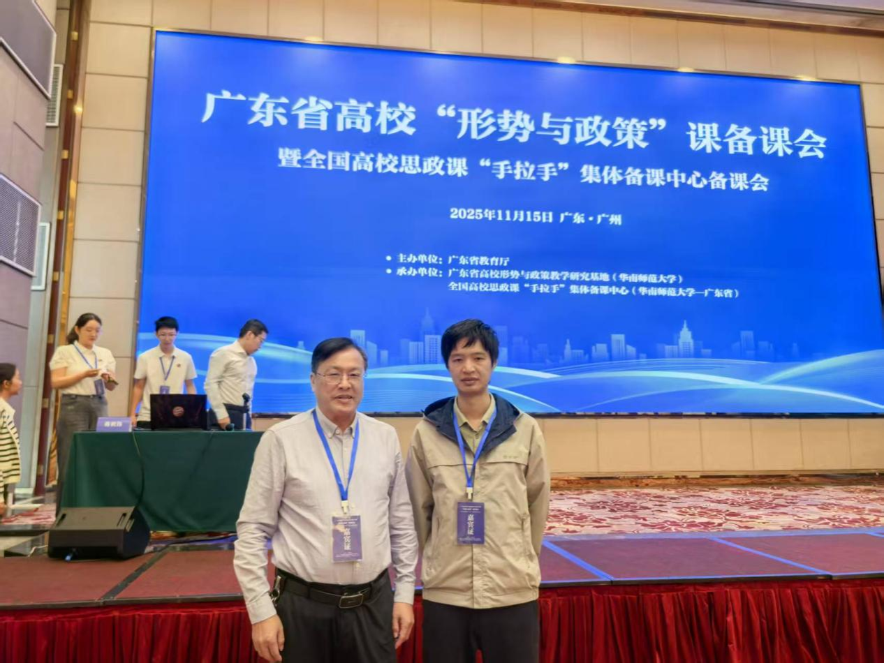 2025年11月15日,由广东省教育厅主办,华南师范大学9428cn太阳集团古天乐承办的广东省高校2025年秋季学期“形势与政策”课备课会在广州珠江国际酒店六楼召开。我校9428cn太阳集团古天乐副院长卢诚教授携邢立宇老师参加了会议。