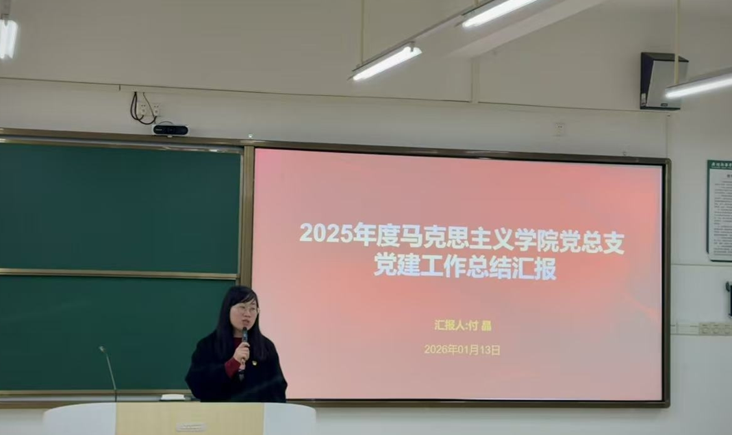 接着,党总支书记付晶全面总结汇总了过去一年学院党建工作成效,谋划未来发展新篇章。付晶指出,2025年学院党总支坚持以习近平新时代中国特色社会主义思想为指导,紧扣“高质量党建引领高质量发展”主题,深入贯彻落实党的二十大精神及教育领域重要部署,扎实推进党建与业务深度融合。通过严格执行“第一议题”和“三会一课”制度,全年开展党总支集中学习12次、专题党课10次,创新采用线上线下结合的学习模式,推动理论武装走深走实。在组织建设方面,学院党总支通过支委培训、民主评议、主题党日等活动夯实组织根基。全年开展师德教育“点灯活动”、廉洁基地研学、黄埔军校现场党课等特色活动,显著增强支部凝聚力。党建成果转化显著。全院教师获党建征文校级奖22项、省级微党课竞赛一等奖1项,立项党建课题市级1项、校级6项。党员在本科教学评估、思政课建设、社会服务中发挥先锋模范作用,5名教师入选校级宣讲团,多次赴校内外开展理论宣讲。汇报同时指出,当前党总支在支部特色建设、党建品牌效应等方面仍需加强。下一步,学院将实施“品牌塑造”行动,推动党建与教学科研深度融合,强化理论研究和人才培育,为马克思主义理论学科发展注入新动能。