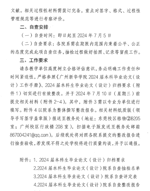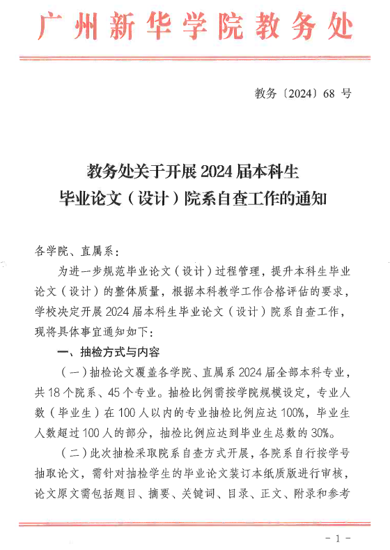 关于开展2024届本科生毕业论文(设计)院系自查工作的通知